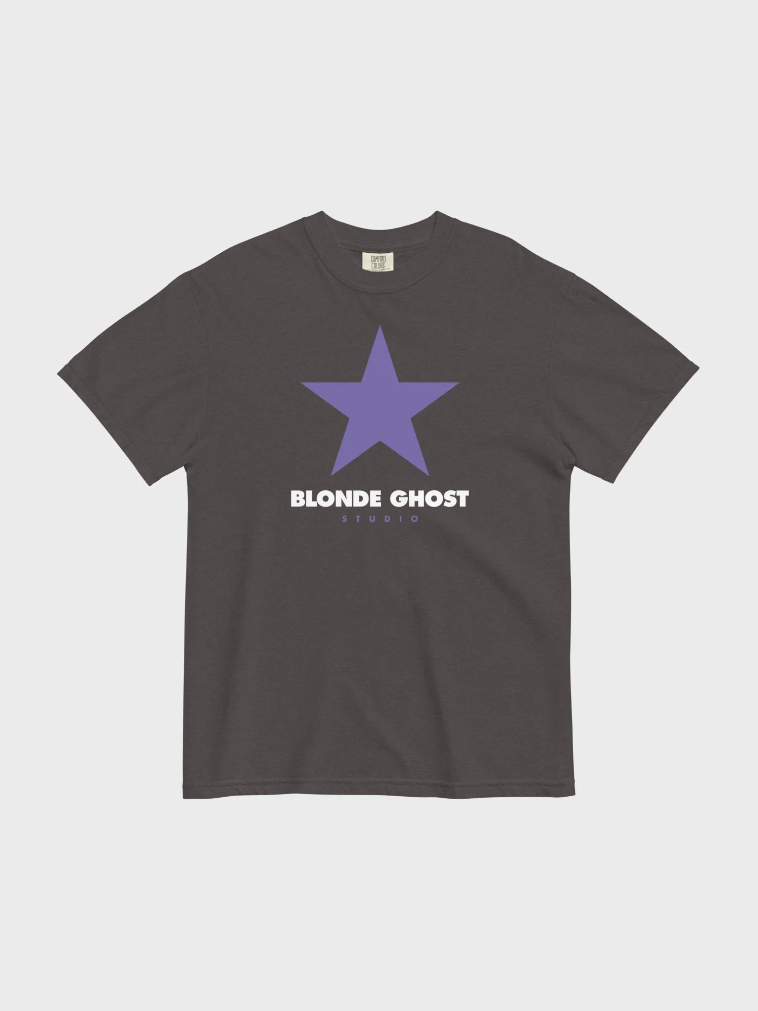 Introducing the Blonde Ghost Studio tee. Graphics printed on a garment-dyed graphite tee from Comfort Colors.